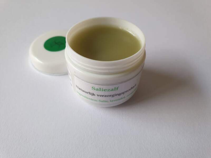 Salieblad staat bekend om zijn antioxiderende, zuiverende, anti bacteriële en verzachtende eigenschappen, waardoor het een geweldige toevoeging is aan zalven en balsems. Ik heb dan ook een heerlijke Saliezalf gemaakt met een vleugje lavendel. Een hele fijne dag- en nachtcrème die de huid ondersteuning kan bieden, waardoor de huid zich beter kan beschermen. Salieblad helpt namelijk de barrièrefunctie van de huid te versterken, doordat het antioxidanten bevat. Antioxidanten helpen de natuurlijke afweer van de huid te versterken en helpen ook bij de vernieuwing van de huid. Hierdoor kan Saliezalf een helpende zalf zijn bij het vertragen van huidveroudering. Saliezalf kan de natuurlijke afweer én vernieuwing van de huid versterken.