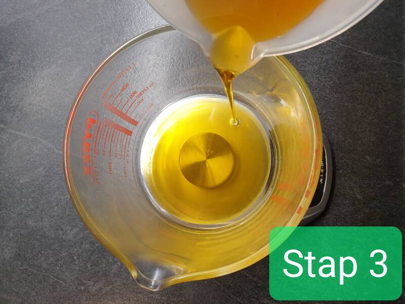 Stap 3: de goudsbloemolie wordt in een maatbeker gegoten en afgemeten