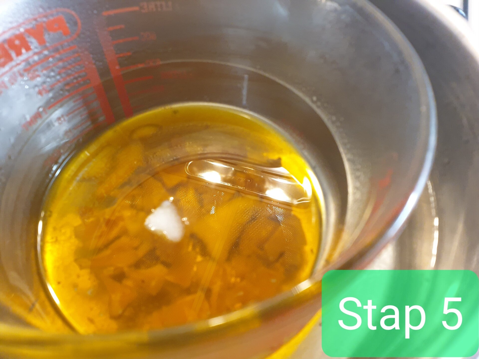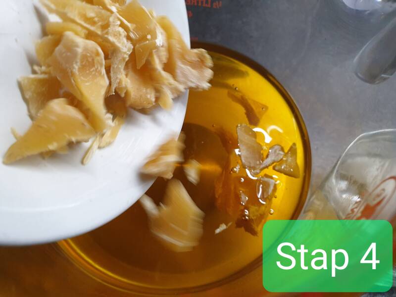 Stap 4: de andere ingrediënten worden toegevoegd aan de goudsbloemolie
