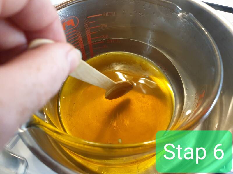 Stap 7 de olie is bijna klaar, de etherische olie wordt toegevoegd