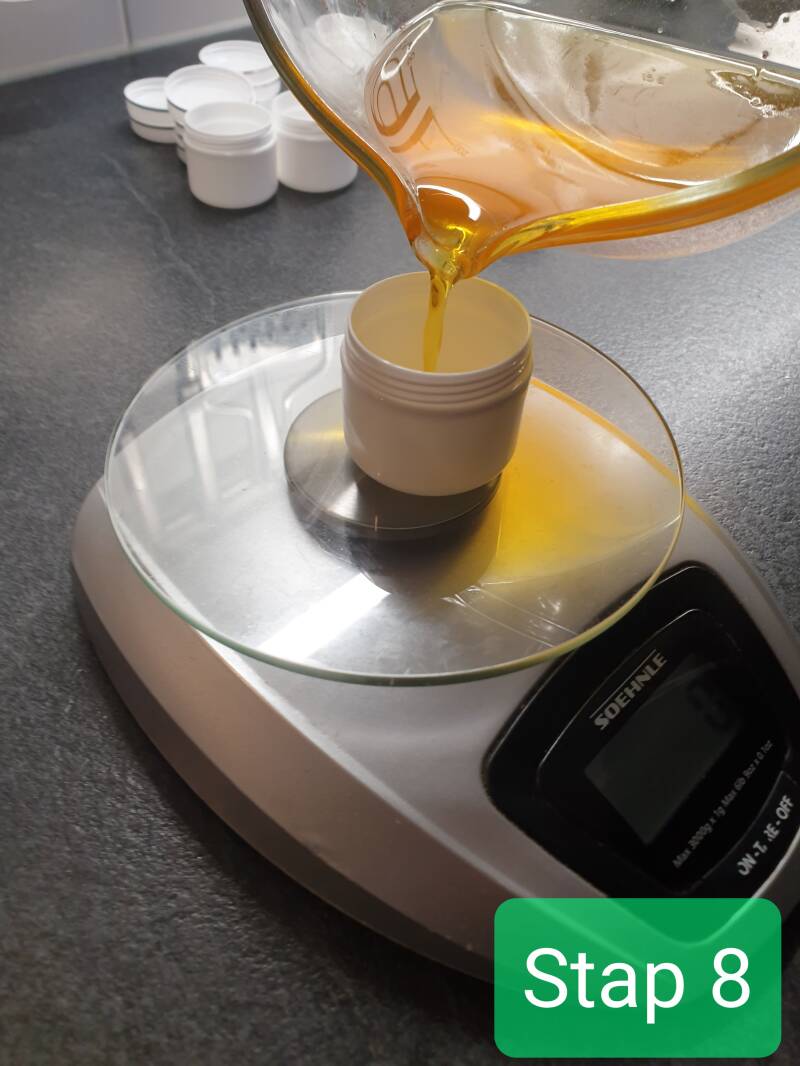 Stap 8: de olie is klaar en wordt in potjes gegoten